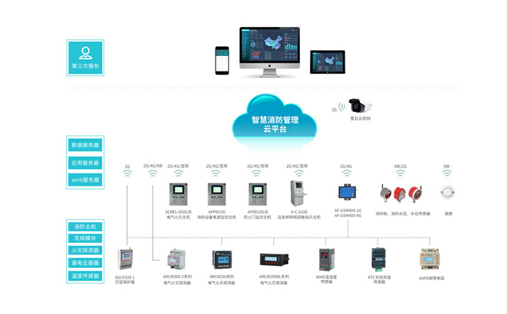 簡介:安科瑞智慧消防云平臺(AcrelCloud-6800)基于物聯網、大數據、云計算等現代信息技術,將分散的火災自動報警設備、電氣火災監控設備、智慧煙感探測器、智慧消防用水等設備連接形成網絡,并對這些設備的狀態進行智能化感知、識別、定位,實時動態采集消防信息,通過云平臺進行數據分析、挖掘和趨勢分析,幫助實現科學預警火災、網格化管理、落實多元責任監管等目標。填補了原先針對“九小場所”和危化品生產企業無法有效監控的空白,適應于所有公建和民建,實現了無人化值守智慧消防,實現智慧消防“自動化”、“智能化”、“系統化”、用電管理“精細化”的實際需求。